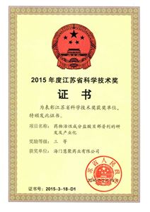 2015年江苏科学技术奖-三等奖